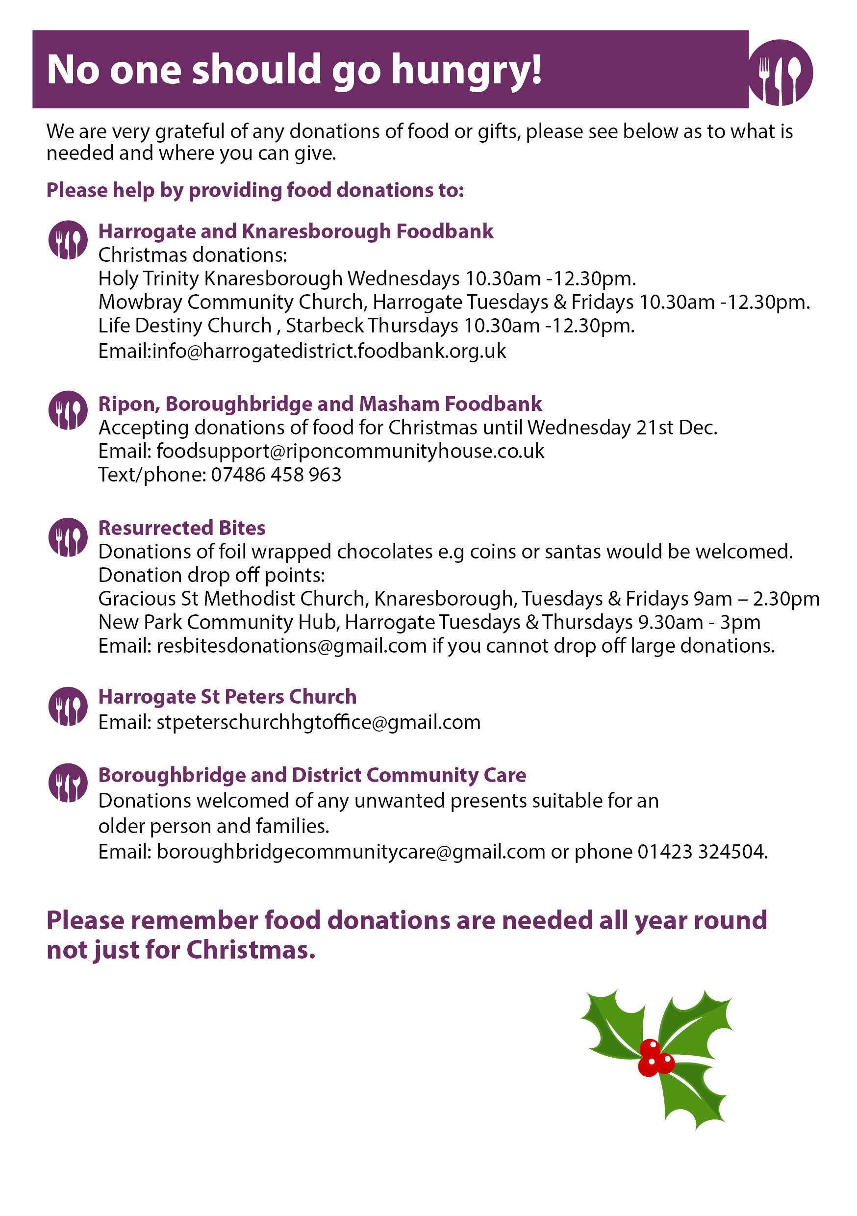 Please find enclosed the Christmas community food leaflet detailing where people can get food support over the Xmas period. I have also attached this in JPEG for your social media.