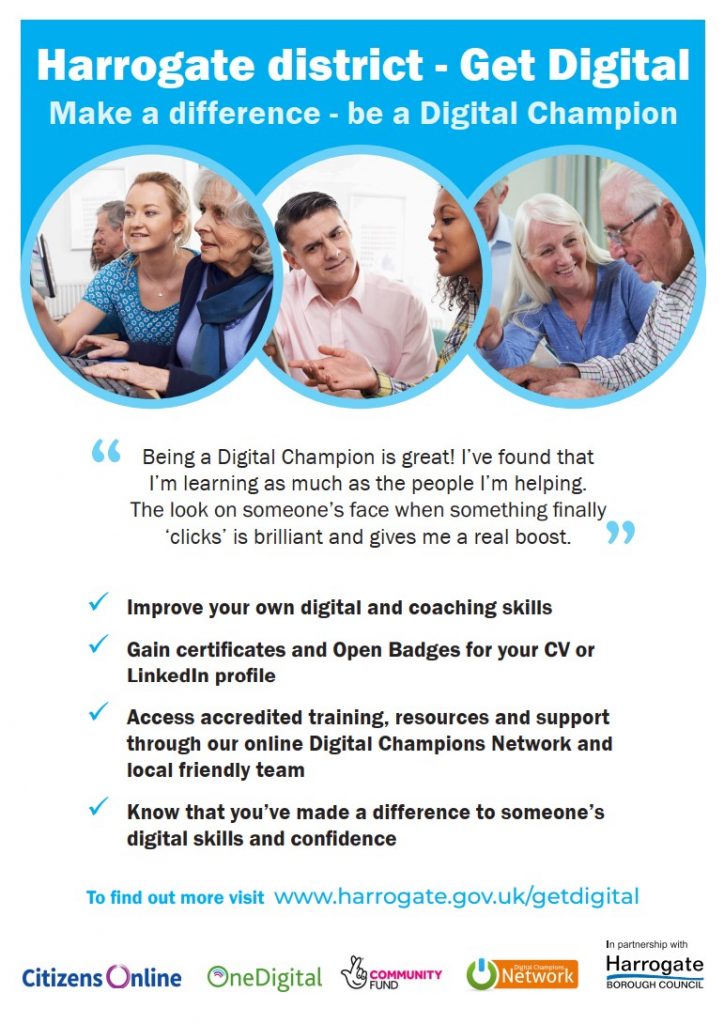 Across the Harrogate District, we are aware that there is still a significant percentage of our residents who don’t have any digital skills. That’s why we are working with the digital inclusion charity Citizens Online to improve residents’ basic digital skills and confidence to access online opportunities and services across the district. Our ambition is to assist anyone who isn’t currently able to take full advantage of technology, because of a lack of confidence or skills.